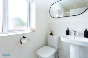 Incorporating a double shower enclosure, WC and wash hand basin.
