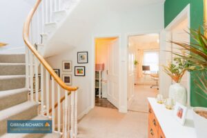 Stairs to first floor. Doors to sitting. kitchen/dining room and cloakroom.