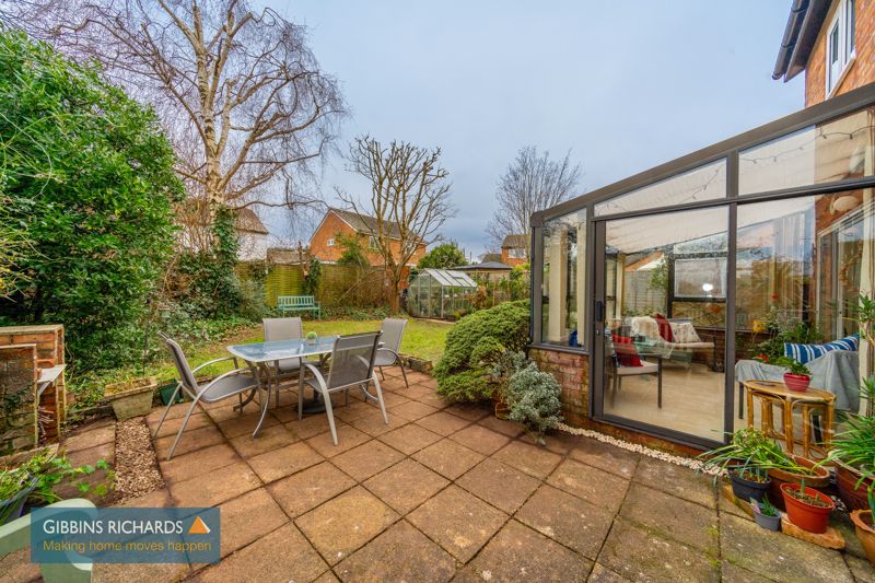 The property enjoys a good degree of frontage with a large expanse of lawn and extensive driveway with turning circle leading to a carport and single garage. Side access leads to a fully enclosed south-facing rear garden which is pleasantly themed with various speciman trees, sun patio, lawn section, greenhouse, fruit trees and vegetable beds.