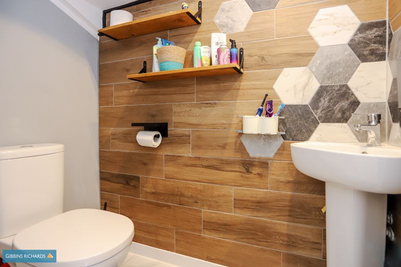 Rear aspect obscure window. Fitted in a three piece suite comprising low level WC, wash hand basin and walk-in shower.