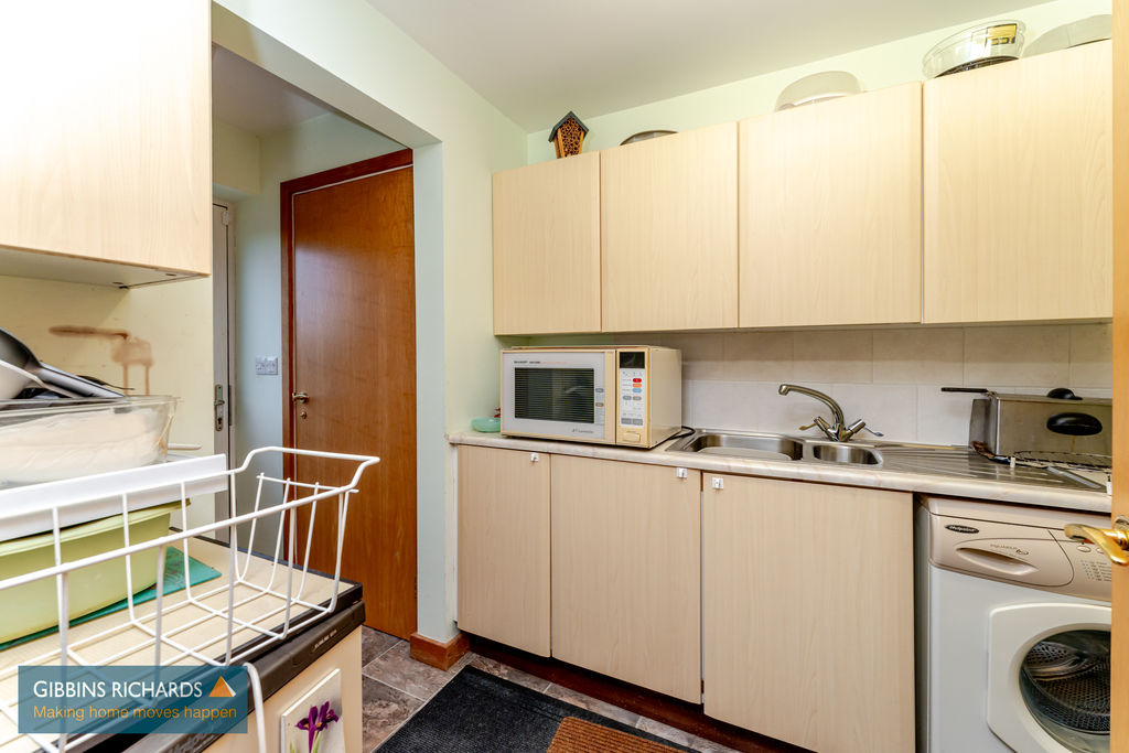Space and plumbing for washing machine, leading to cloakroom, boiler cupboard and door to garden.