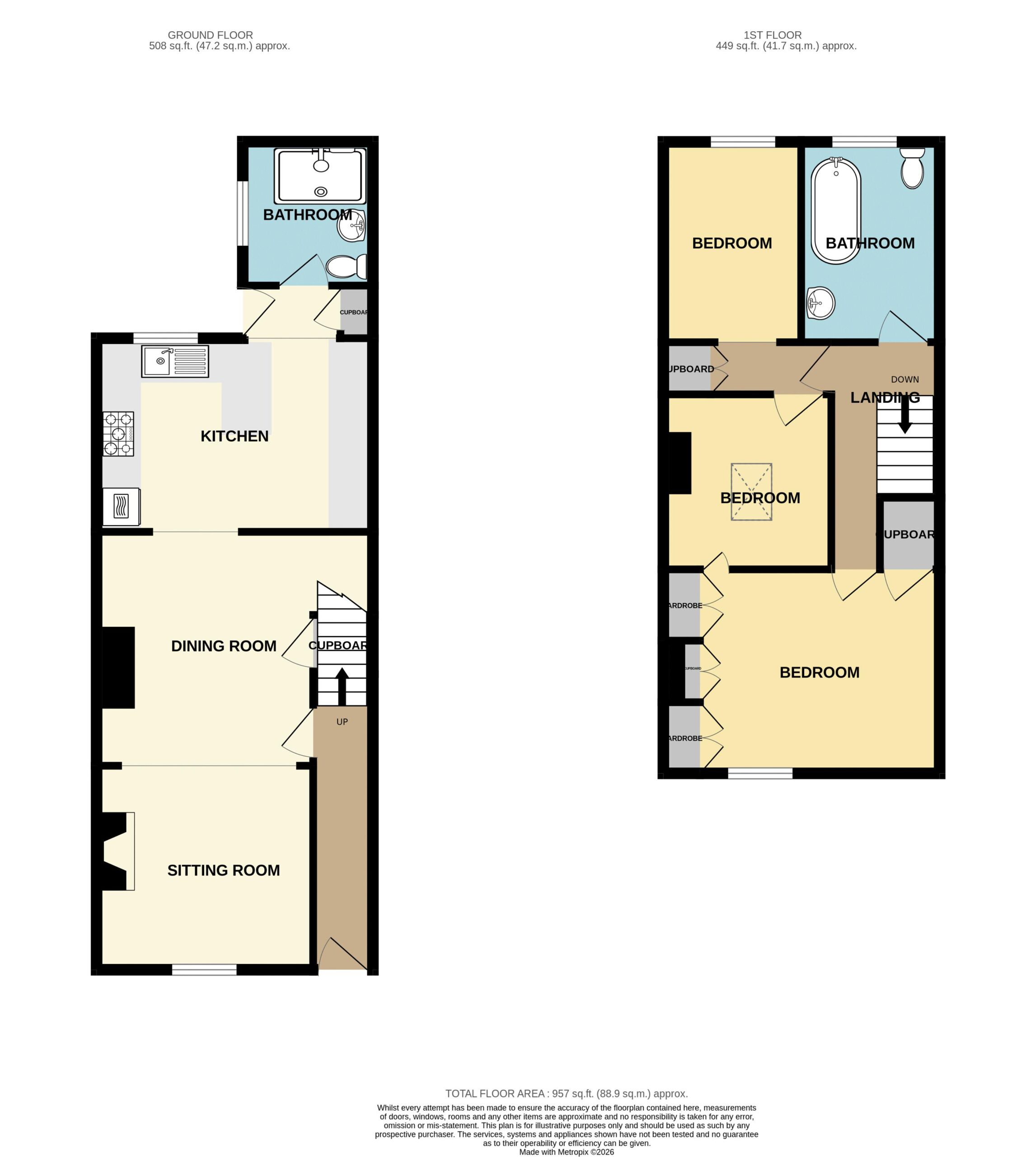 8′ 9” x 7′ 3” (2.66m x 2.21m)