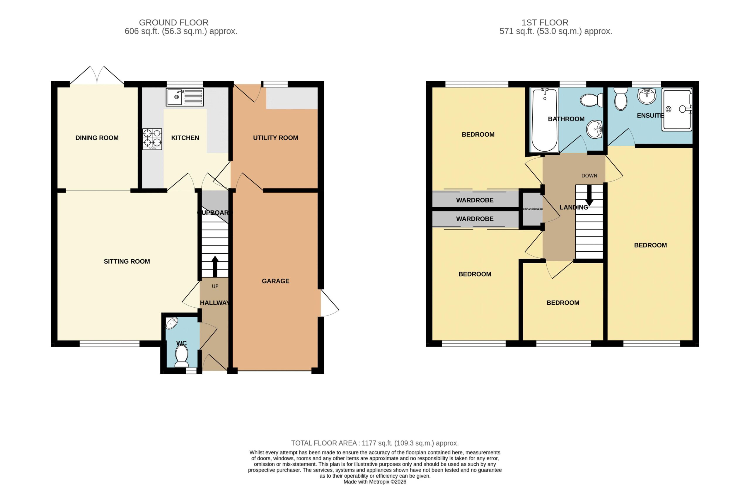 integral garage 17′ 6” x 8′ 1” (5.33m x 2.46m) with an electric door. Pleasant enclosed rear garden with various different areas and enjoying a sunny aspect.