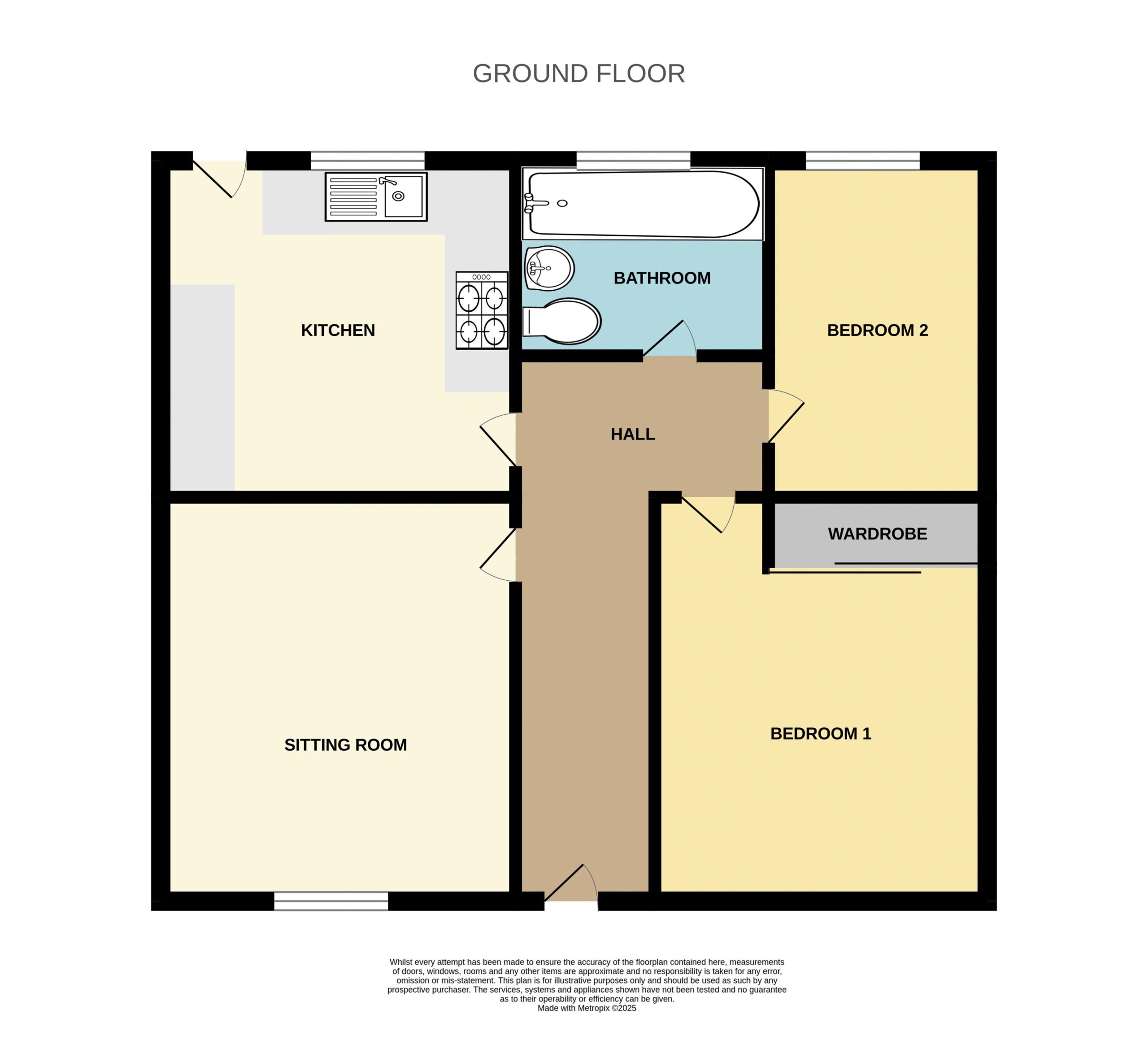 Doors to all rooms. Hatch to loft.