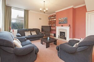 windows to front and side, Adams style fireplace surround with coal effect gas fire and marble hearth, tv and satellite aerial points, moulded ceiling cornice and rose, two radiators.