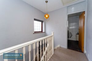 Stairs to first floor. Understairs storage housing the combination boiler for the central heating.