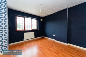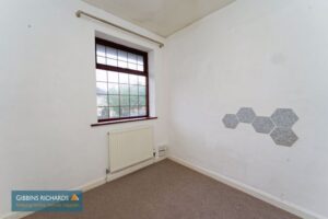 Rear aspect window. Fitted with units to base and walls. Integral dishwasher, fridge, ‘Range’ style gas cooker with ring hob, extractor fan over. Side door to rear garden.