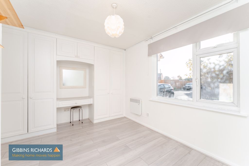 Rear aspect window. Built-in wardrobes and vanity unit.