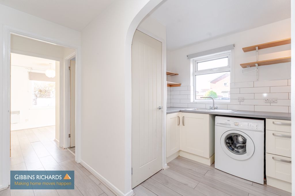 Side and front aspect windows. Fitted with a range of ‘Shaker’ style units to base and wall. Built-in electric oven and hob. Space for white goods. Cupboard housing the immersion heater.