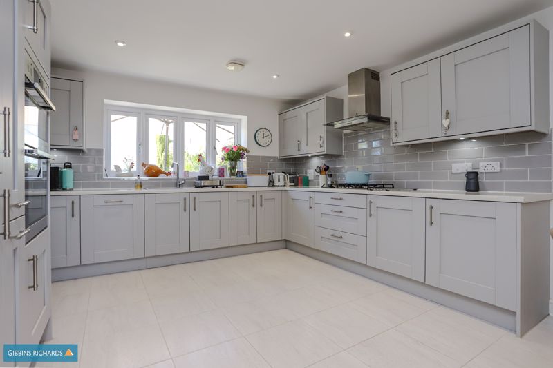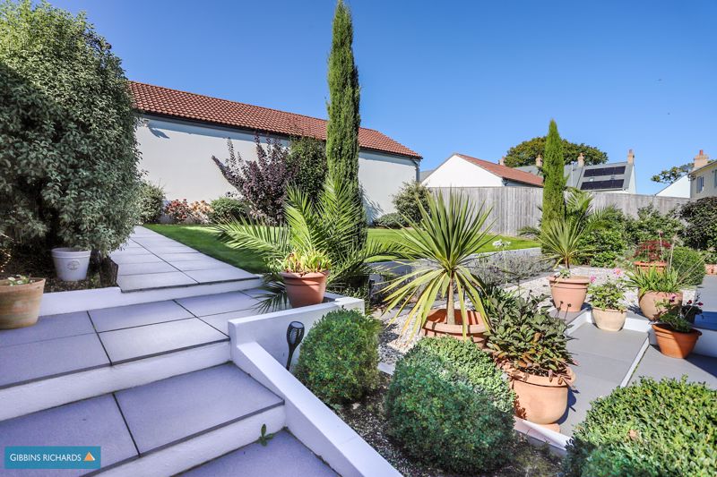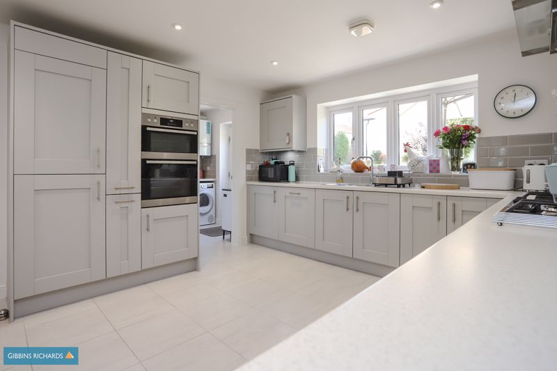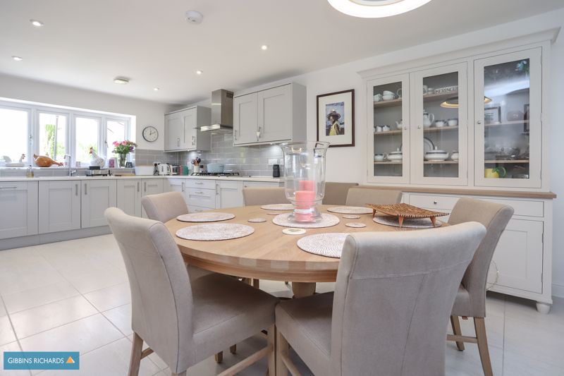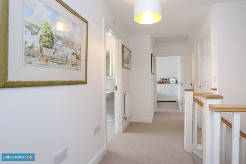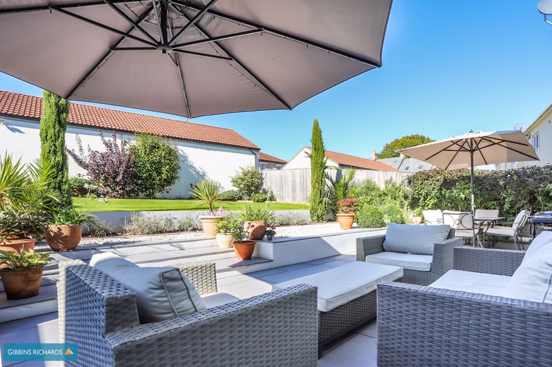The property occupies a wonderful position on the edge of the development, overlooking an open green area and views beyond. To the rear is an exceptional south-west facing garden, one of the largest on the development, which has been beautifully landscaped by the current owners. Behind is a sizeable double garage and driveway for parking.