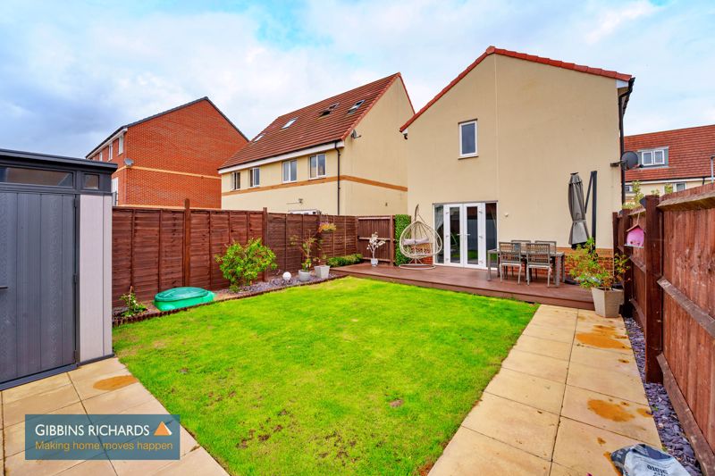 Fully enclosed rear garden laid to decking, lawn and patio slabs. Rear access gate leading to driveway.