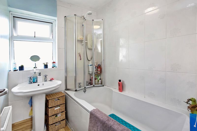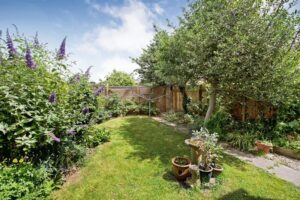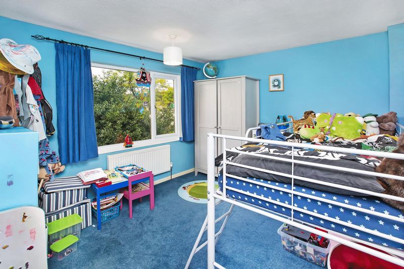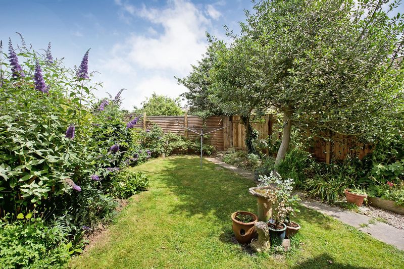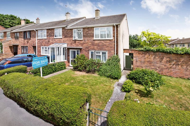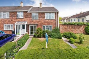 To the front of the property there is a wide corner lawn providing potential off road parking. A side gate leads through to a fully enclosed garden with store shed and lawned area.