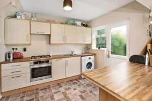 Refitted with a built-in oven and gas hob with access to rear garden.
