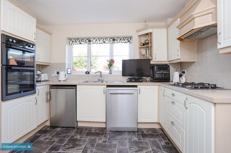 Rear aspect window. Fitted floor and wall cupboards. integrated built-in oven and hob. Door to utility.