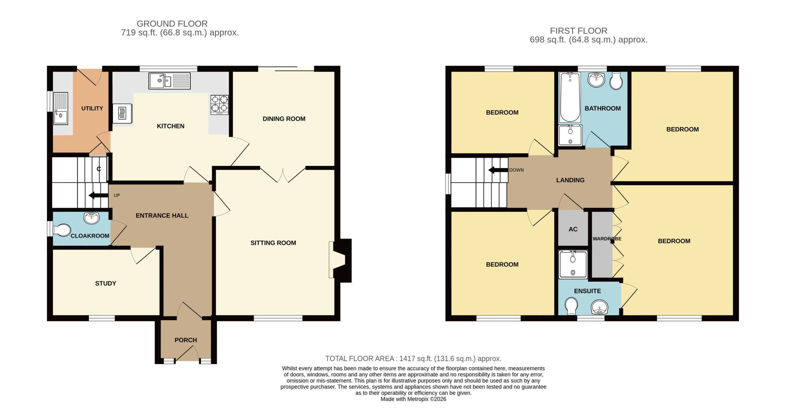 Stairs to first floor. Doors to study, sitting room, kitchen and cloakroom.
