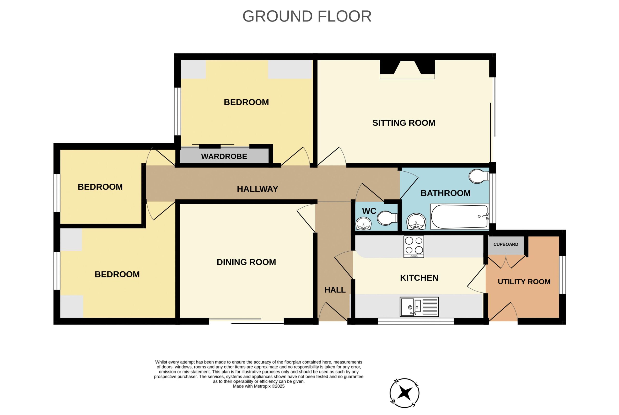 Front aspect window. Built-in wardrobes and storage units.