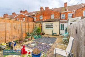 The rear garden is mainly hard landscaped with courtyard area, ornamental slate bed, timber storage shed and rear pedestrian access. The garden itself is fully enclosed by surrounding fencing.