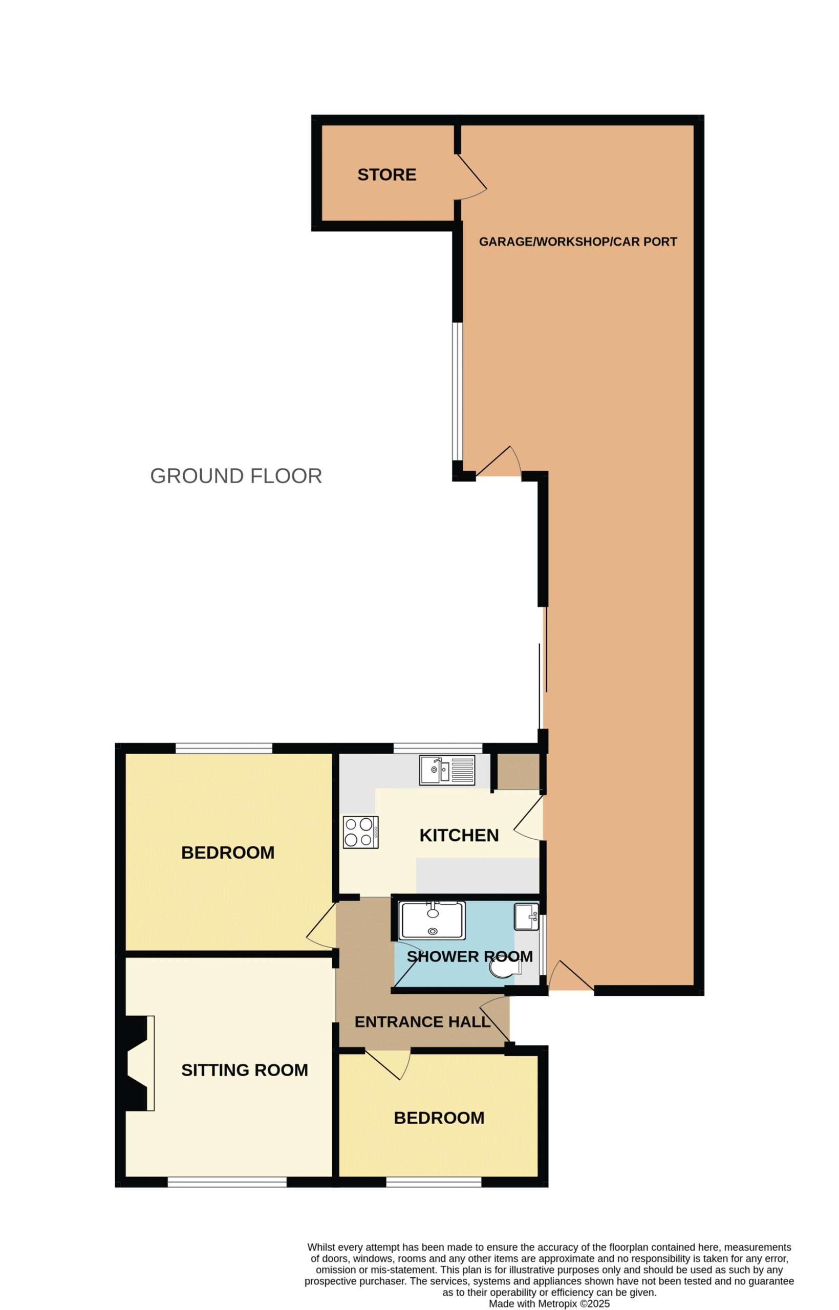 (‘L’ shaped) Doors to all rooms.