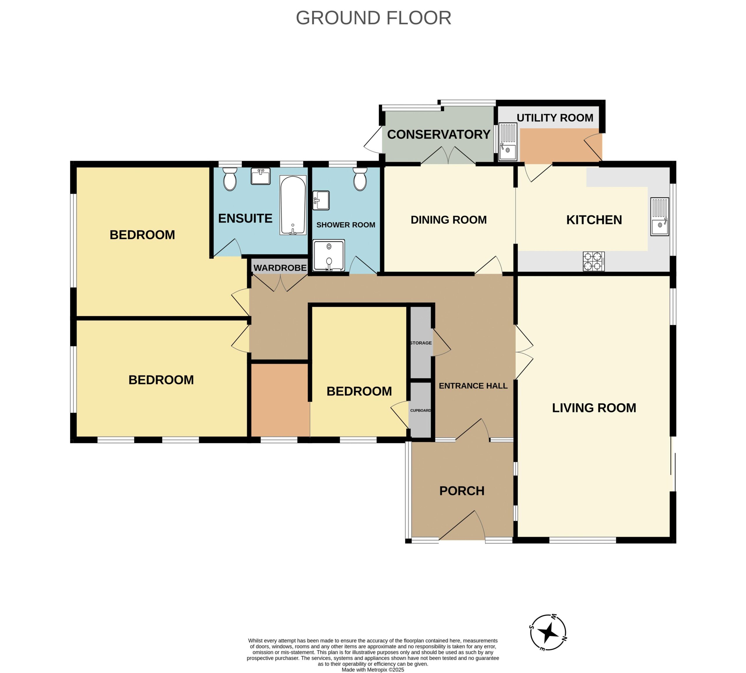 Private front and rear gardens. Ample driveway parking and a double garage behind secure wooden gates.