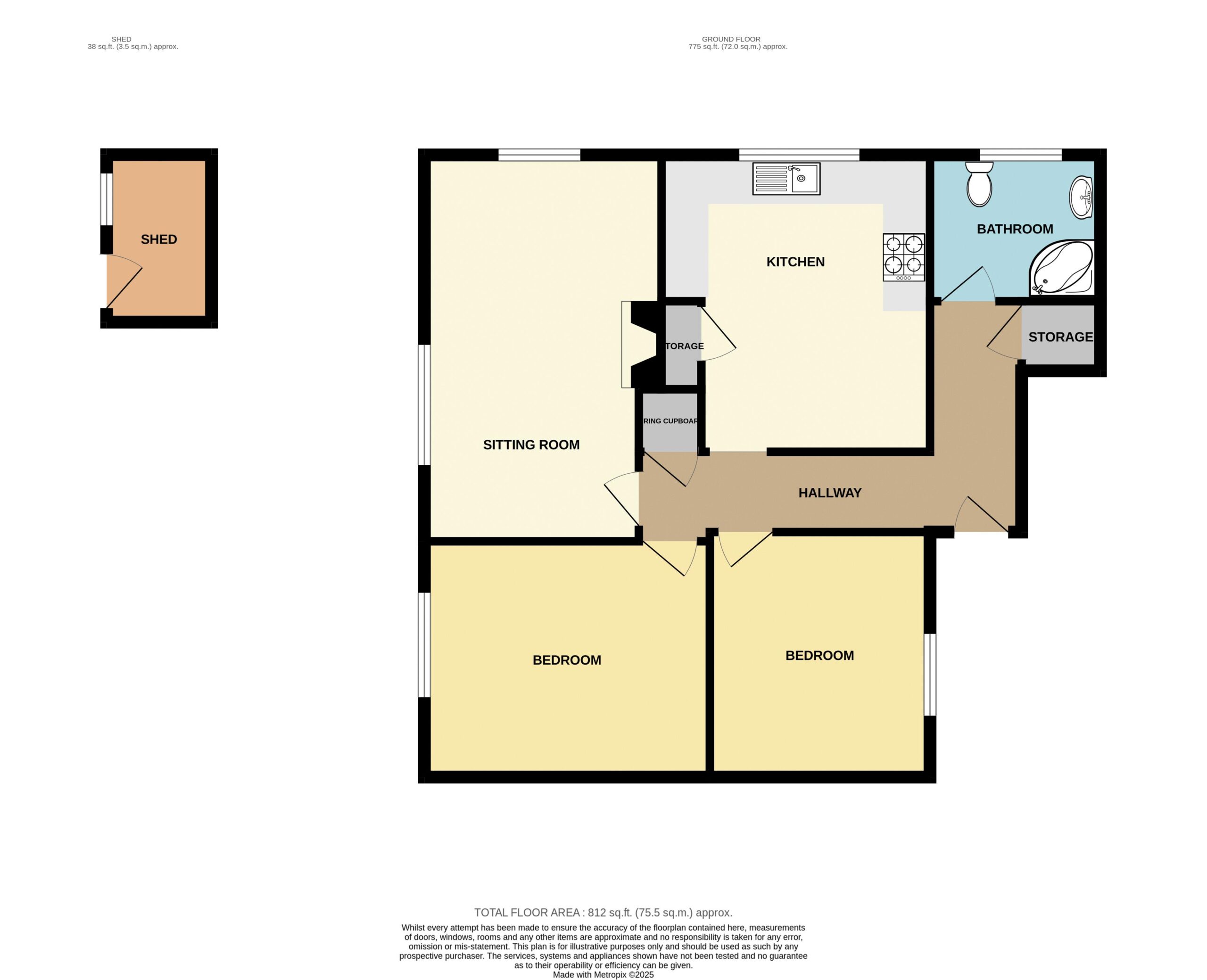 13′ 2” x 10′ 11” (4.02m x 3.32m)