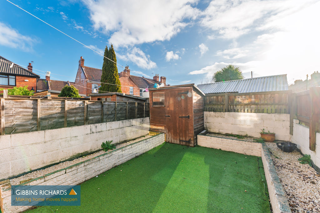 The the rear is a low maintenance garden with artificial lawn and gravel borders. Storage shed.
