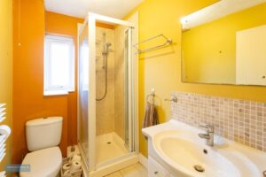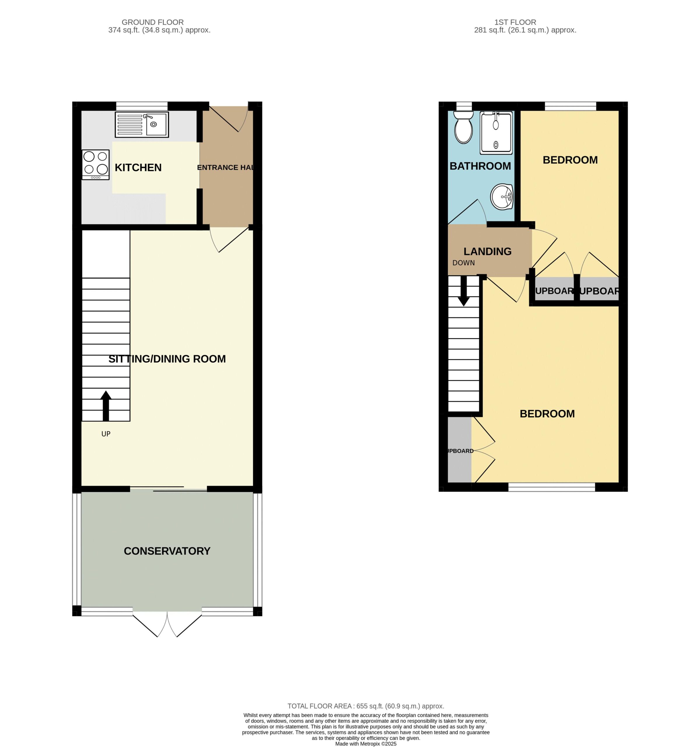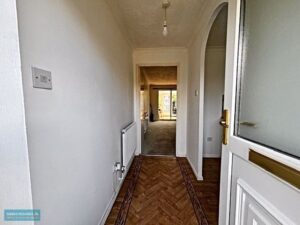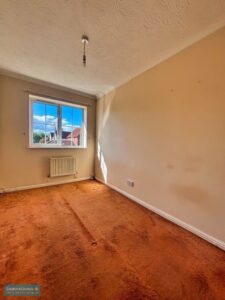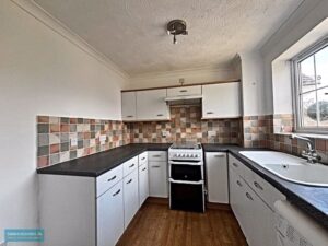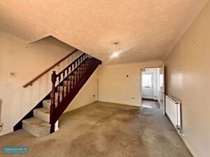 Garage 16′ 2” x 7′ 9” (4.92m x 2.36m) in nearby block with two parking spaces in front. Open plan front garden. Enclosed rear garden.