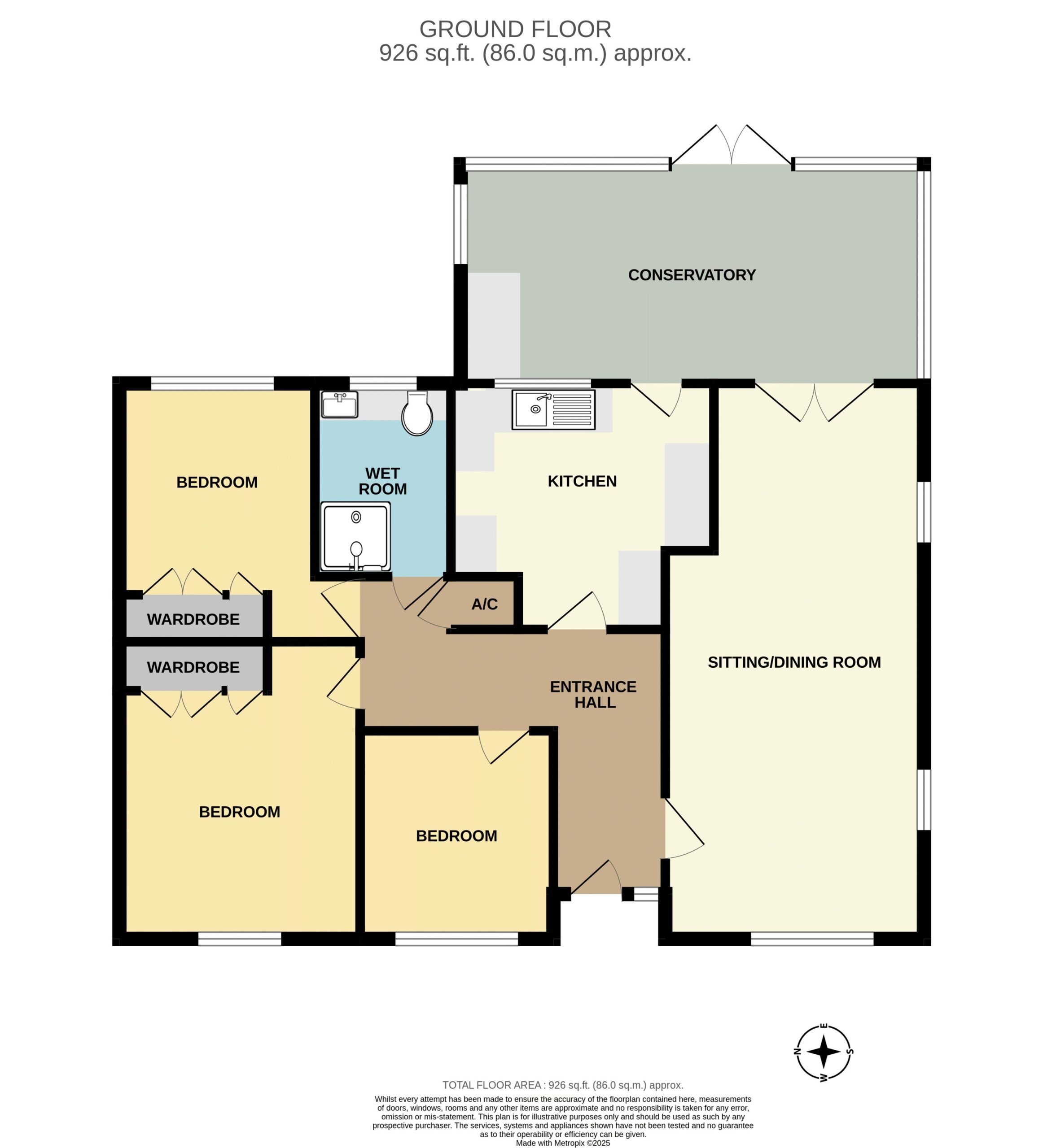 8′ 6” x 7′ 9” (2.59m x 2.36m)
