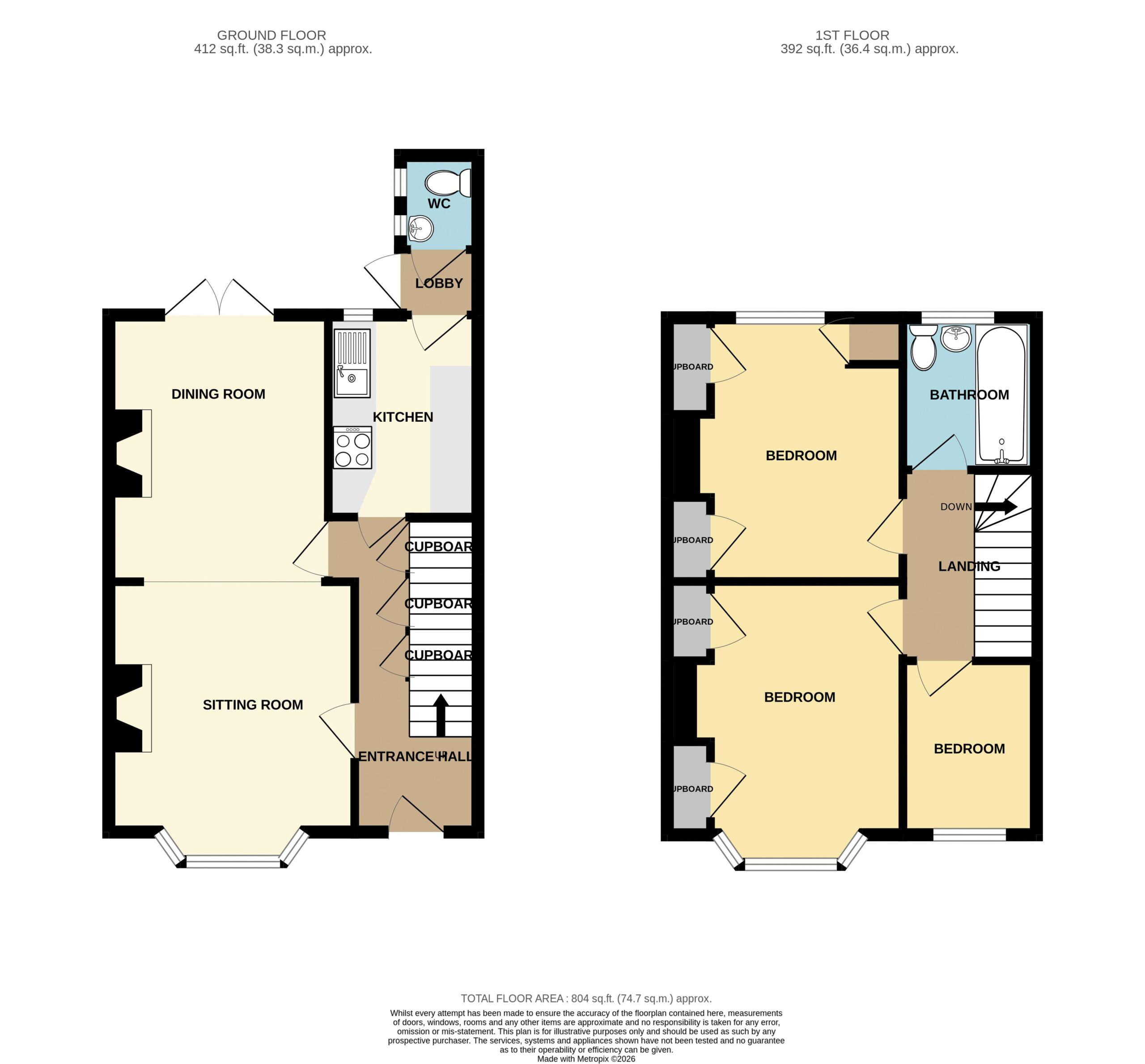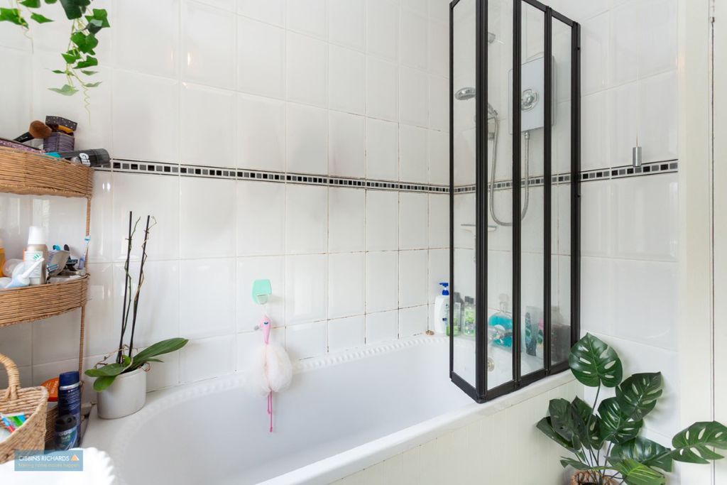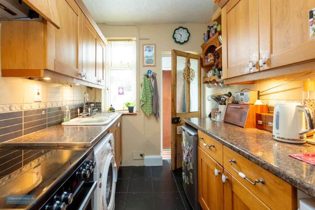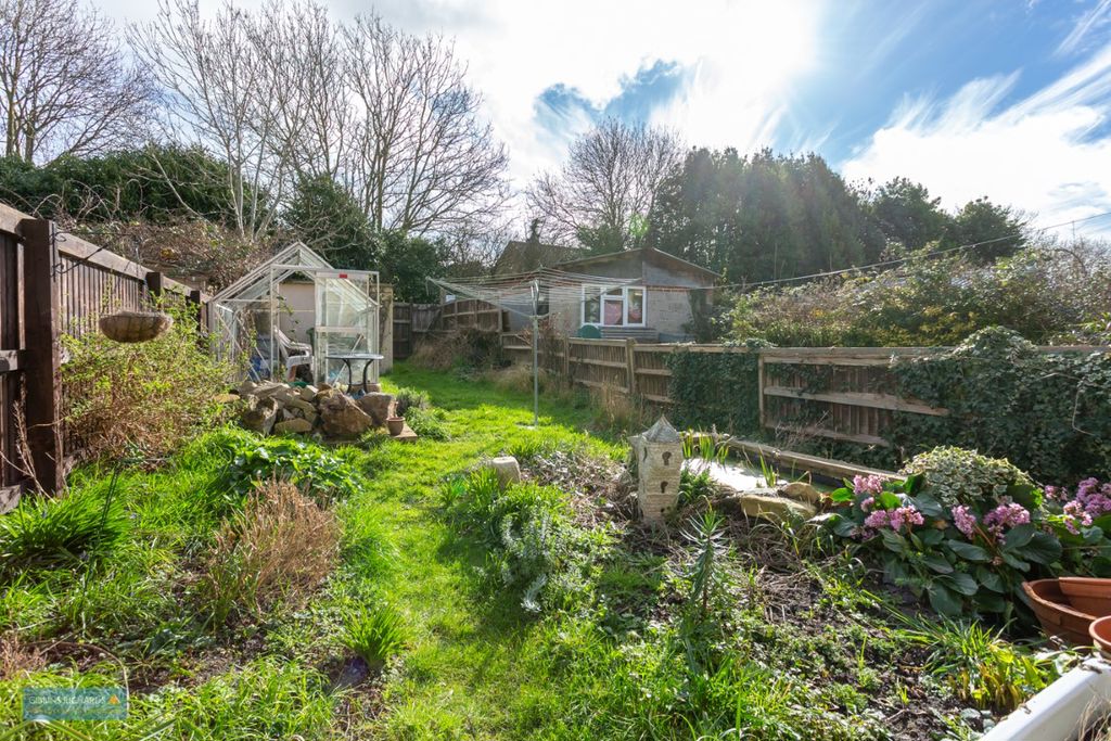 The property enjoys a good-sized private rear garden, a garage accessed via a private lane, and driveway parking for two vehicles.