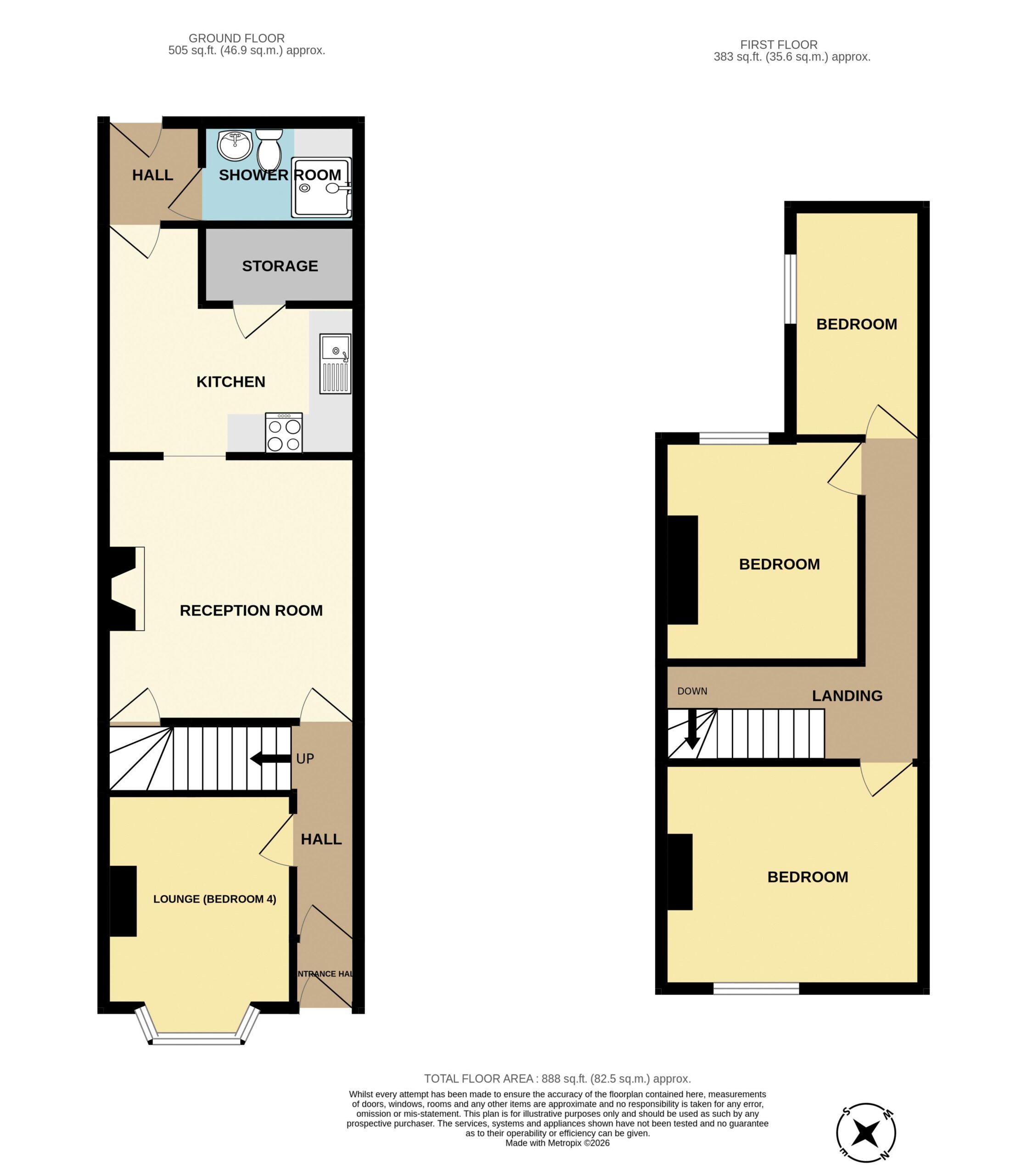 12′ 7” x 12′ 5” (3.83m x 3.78m)