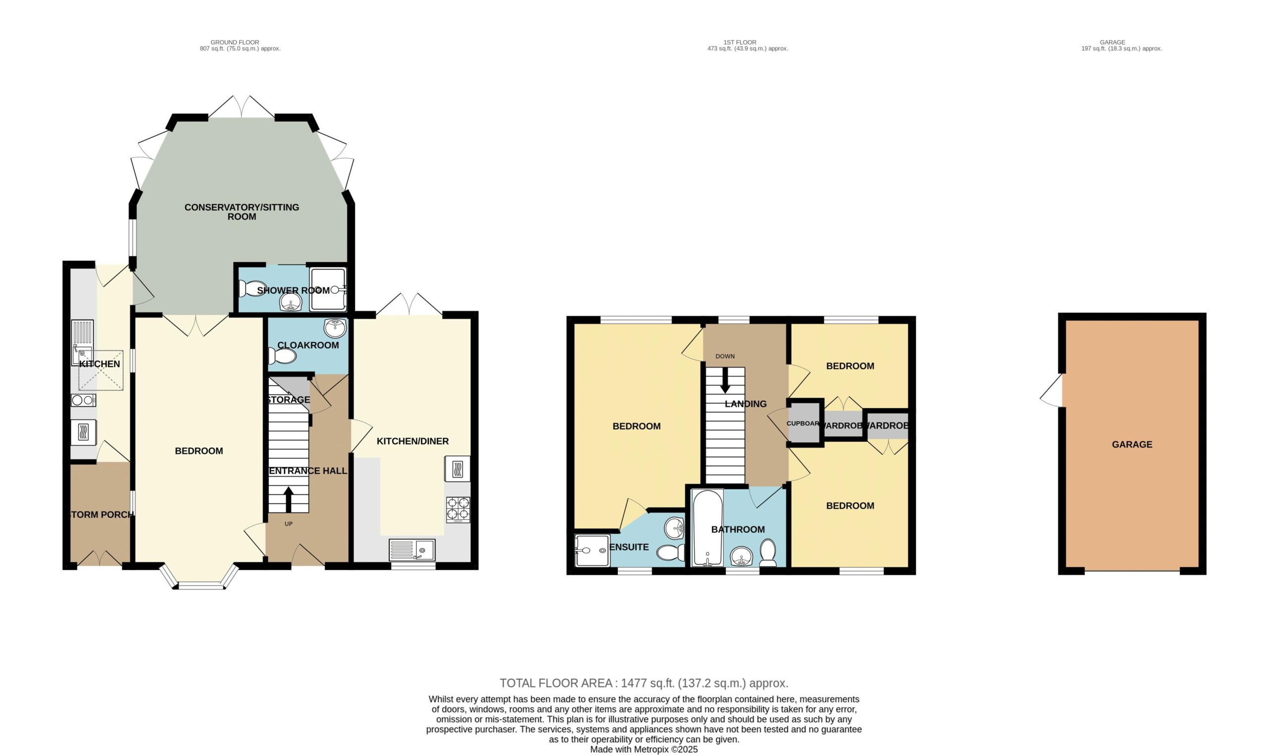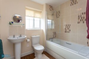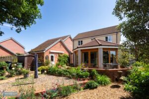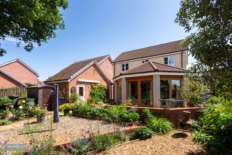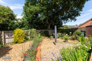 To the front of the property is off road parking in front of the garage 18′ 11” x 10′ 5” (5.76m x 3.18m). Enclosed hard landscaped rear garden overlooking open fields.