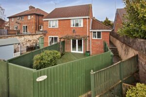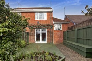 The garden comprises of a mainly decked area with raised timber seating and pergola and numerous bordering shrubs. The garden is well screened by surrounding fence work and there is a side gate leading onto a communal parking area.