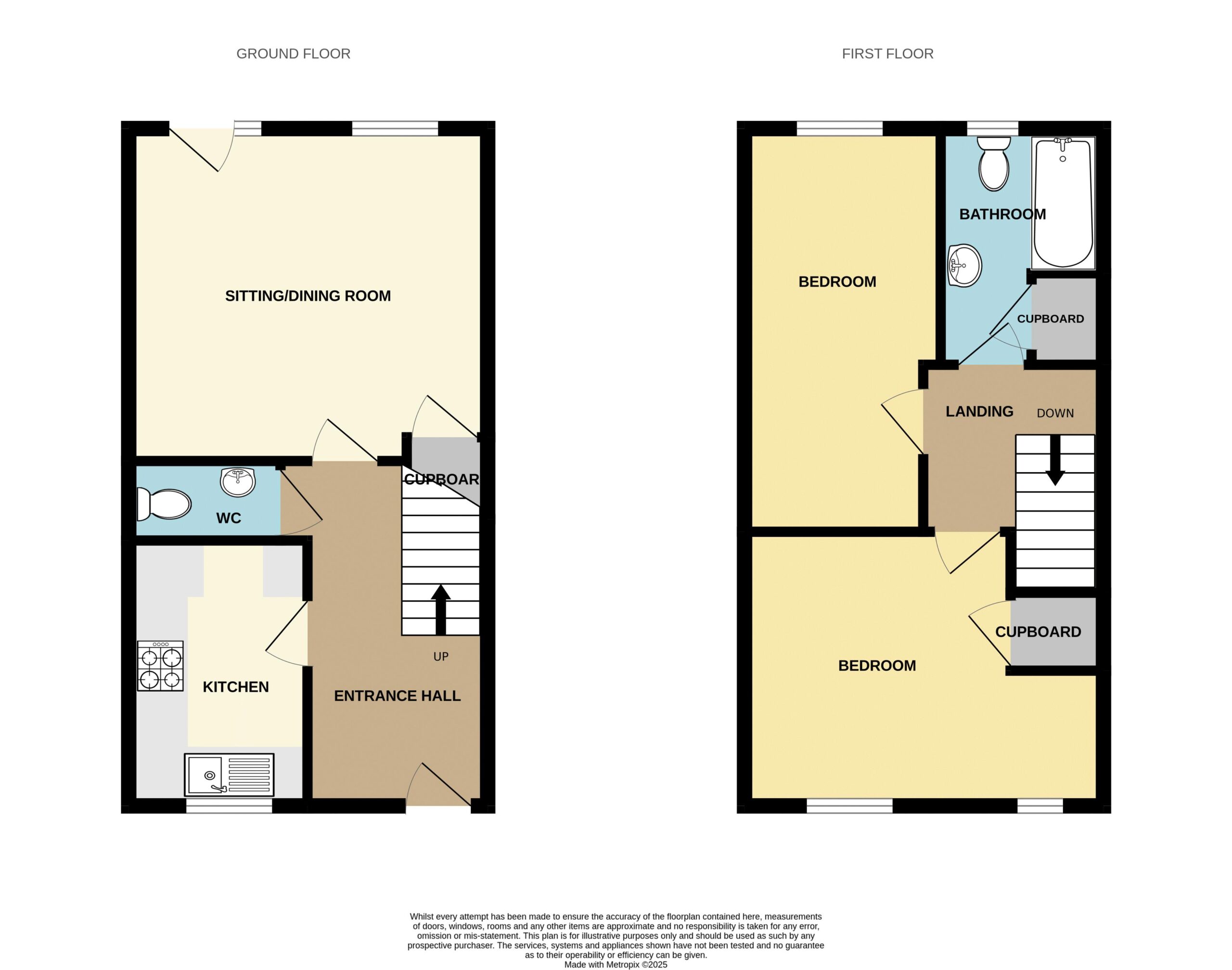 Rear aspect window and door to garden, understairs storage cupboard.