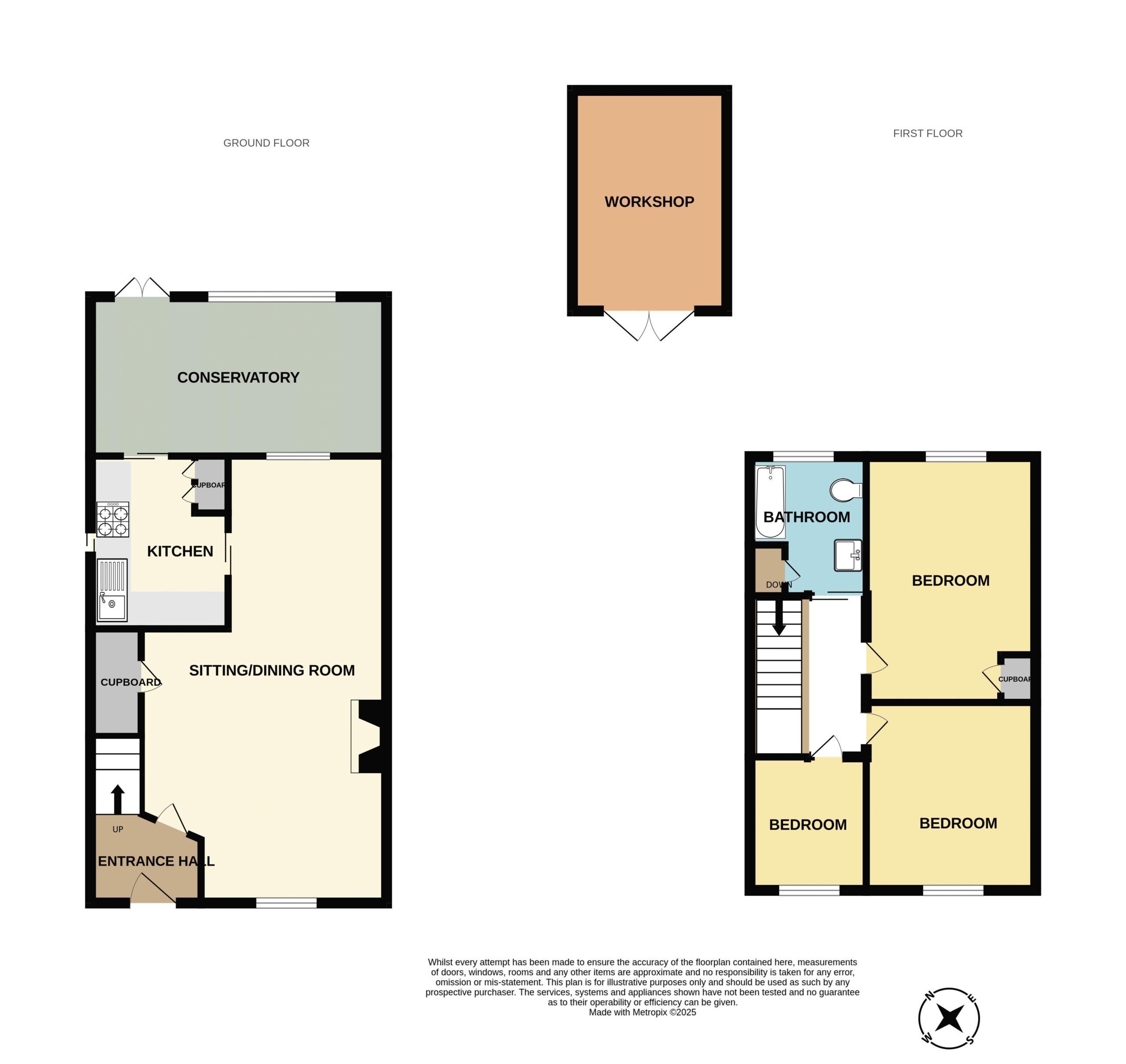 Predominantly gravelled front garden. Fully enclosed garden to the rear with courtyard large timber and insulated workshop – 12′ 0” x 8′ 5” (3.65m x 2.56m) and rear pedestrian access.