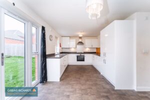 Rear aspect window and French doors to garden. Fitted floor and wall cupboard units with integrated dishwasher, electric oven, gas hob with extractor hood over.