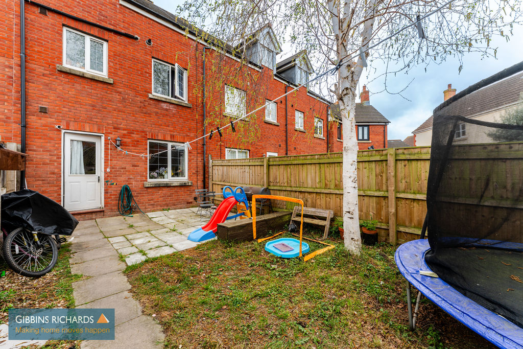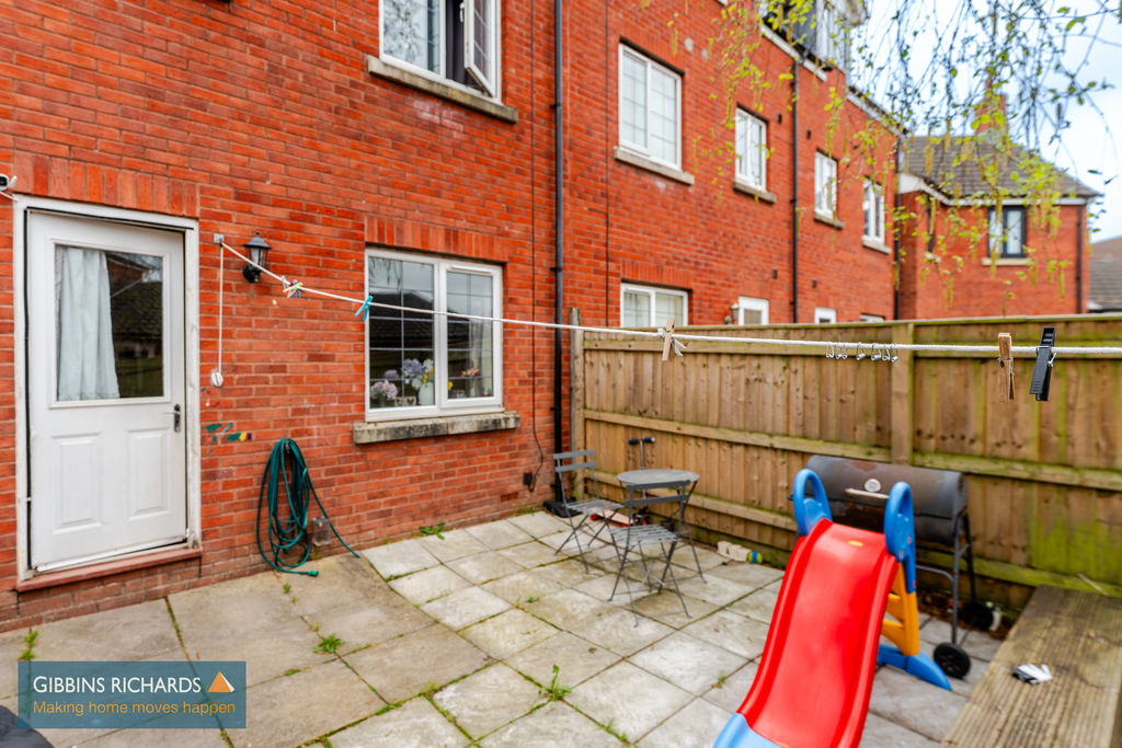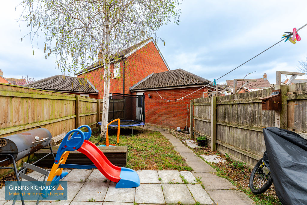 Rear garden laid to patio and lawn, private and enclosed, with personnel door leading into the garage.