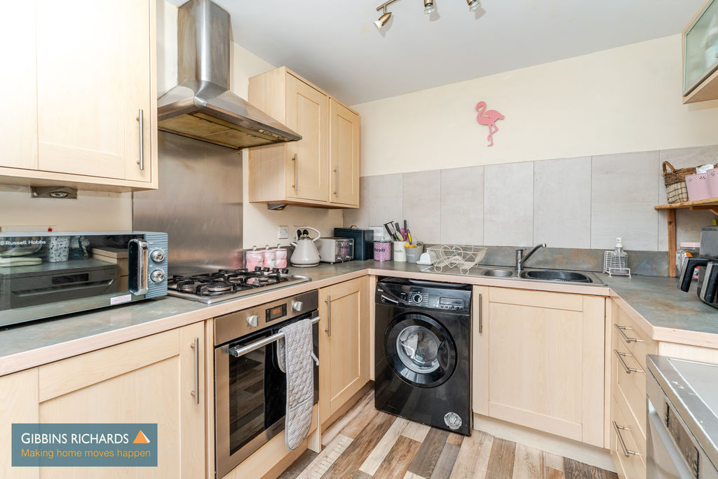 With plumbing for a washing machine, gas hob and electric cooker. Front aspect window.