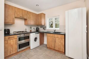 Dual aspect windows. Space and plumbing for washing machine. Neff cooker and hood.