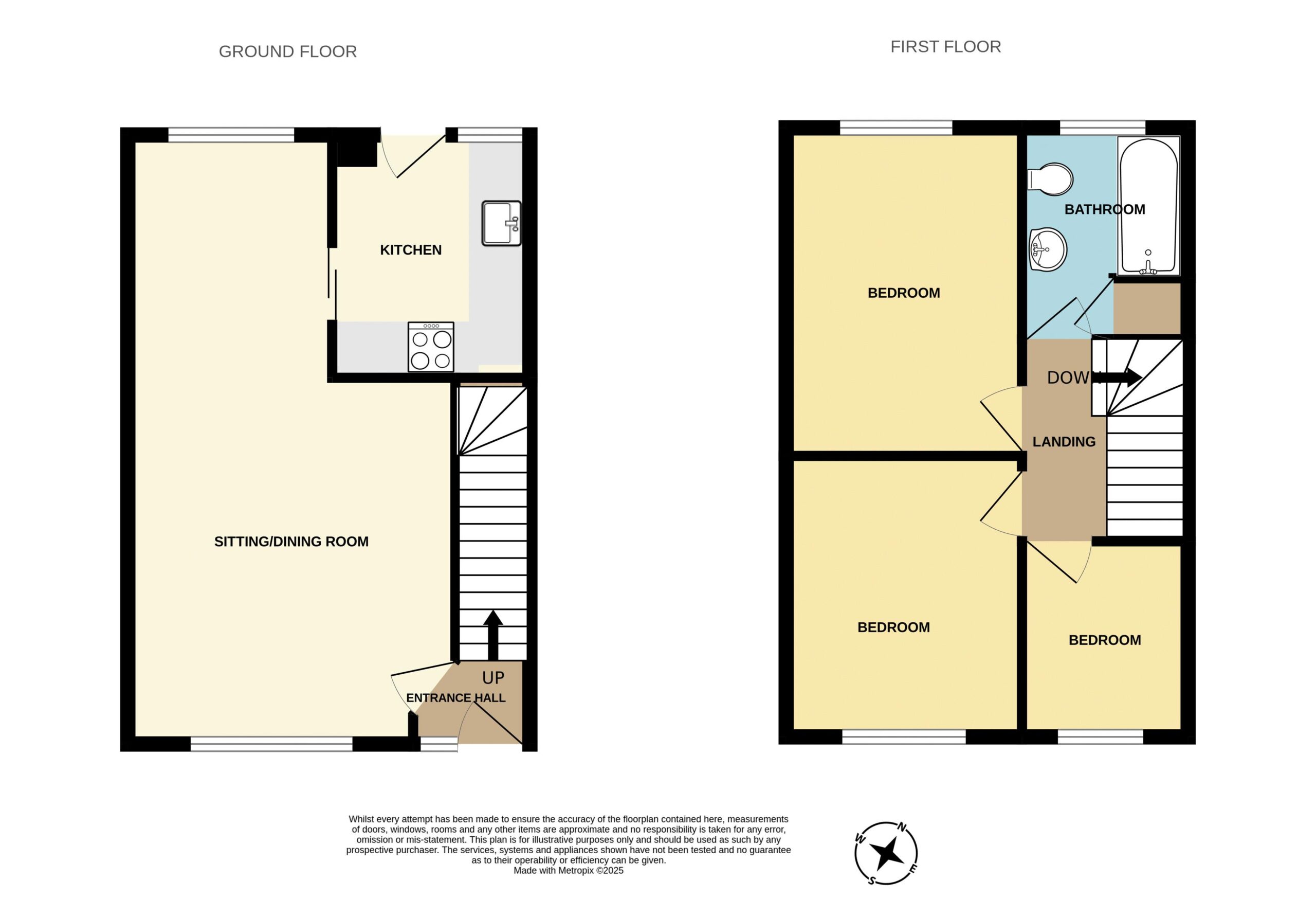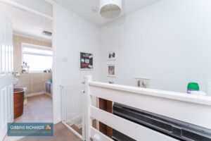 Doors to three bedrooms and bathroom. Hatch to loft.