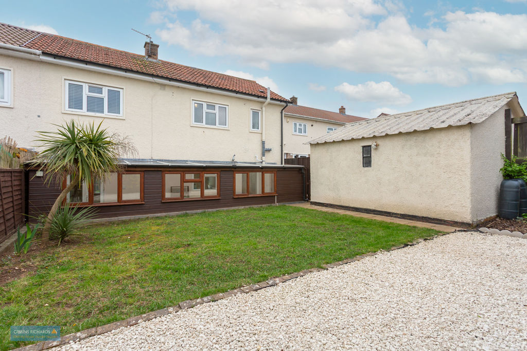 To the front of the property there is a long front garden and driveway providing off road parking for at least two vehicles. Side access leads through to the rear garden, which includes a level lawn, gravelled seating area and brick built shed.