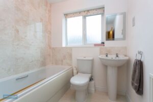The property benefits from a neatly landscaped rear garden, thoughtfully designed for low maintenance while providing an attractive and private outdoor space for relaxation or entertaining. To the front, there is a private driveway offering parking for multiple vehicles and access to a single integral garage.
