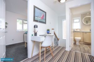 Stairs to first floor. Leading to kitchen/diner, cloakroom and sitting room.