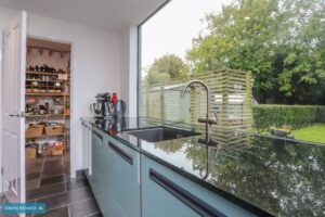(‘L’ shaped room) rear aspect windows, bi-fold doors to garden. Integrated dishwasher, microwave, coffee machine, oven and induction hob and pop-up vent system, with walk in pantry.