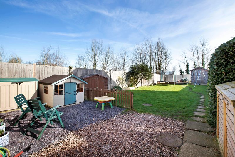 Garden to front with off road parking for two vehicles. Large garden to rear of approximately 70′ in length with lawn, decking and outside tap as well as slate and pebbled sun terrace area.