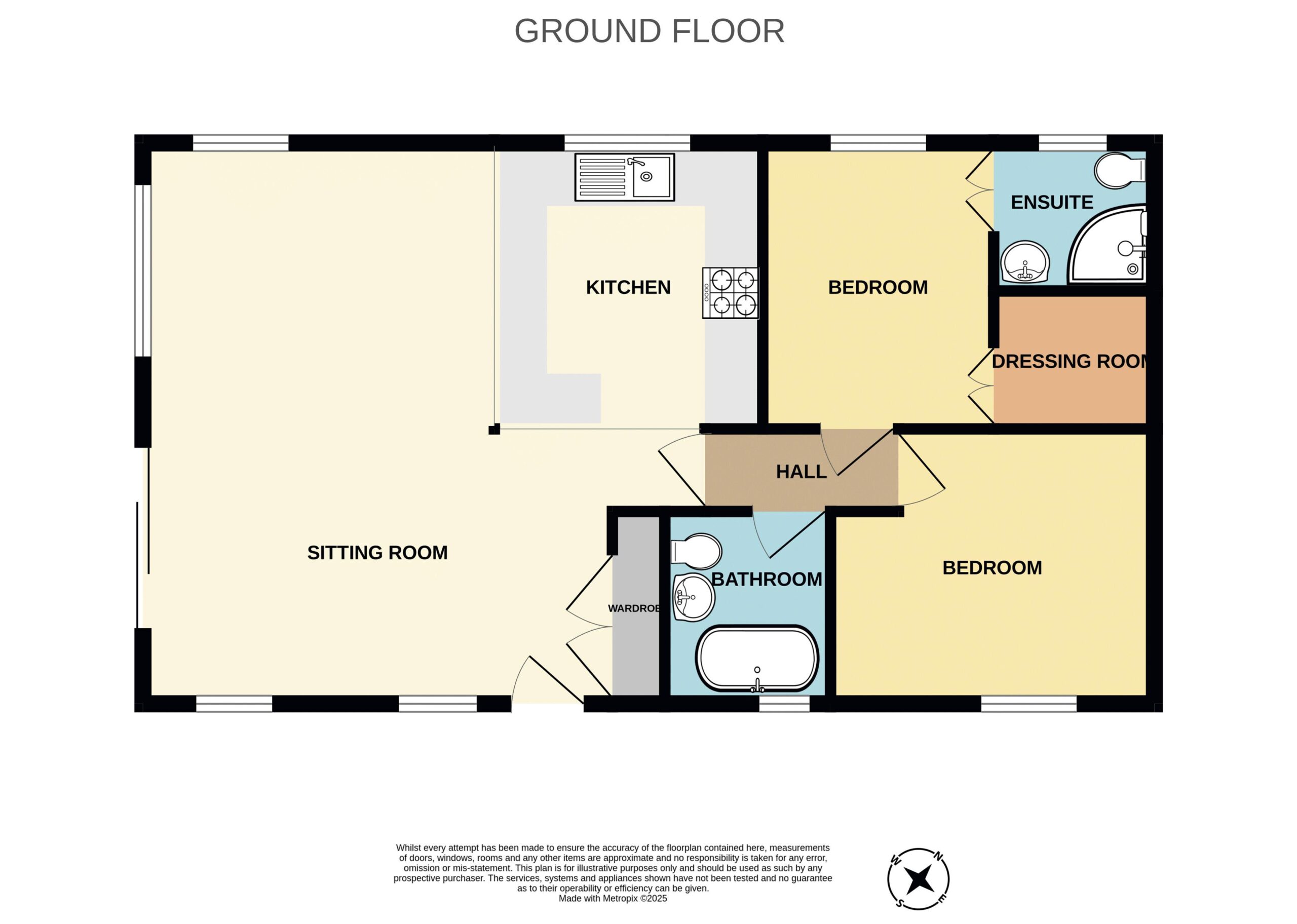 Attractively fitted including copper and nickel bespoke double ended bath, wash stand and WC.