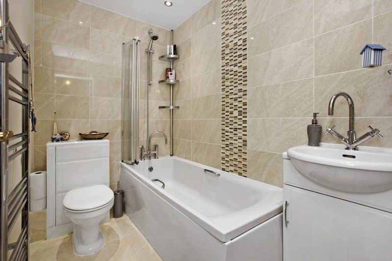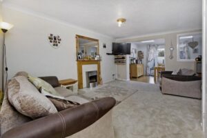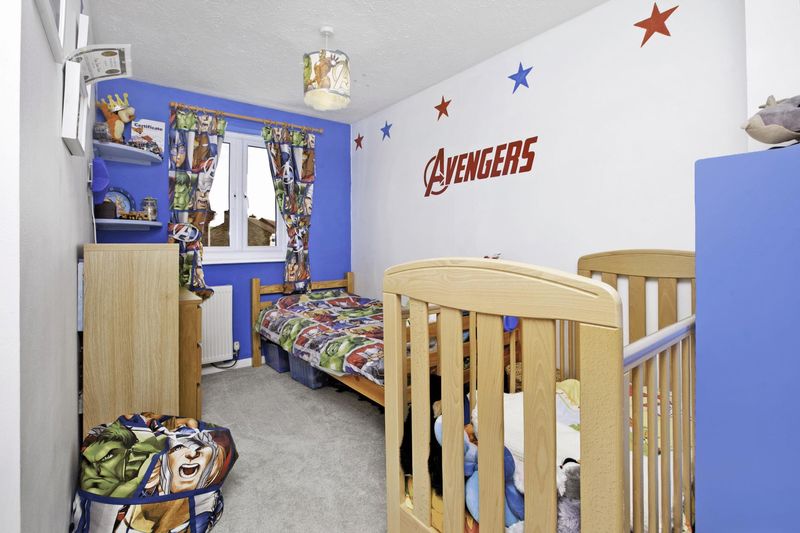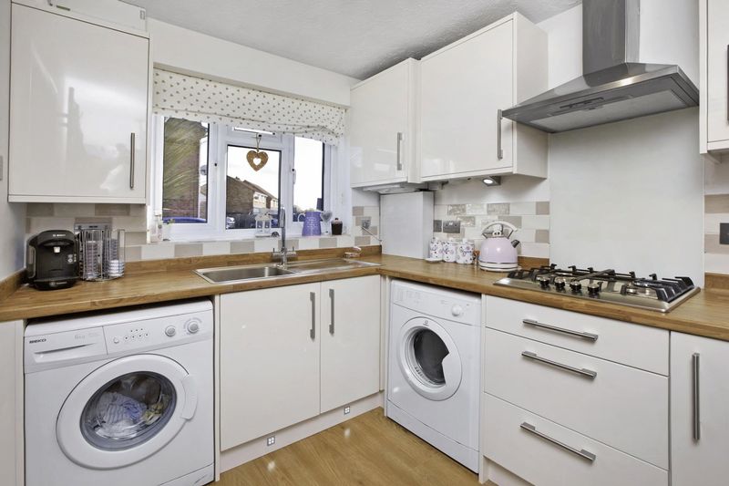 tarmac drive for two cars. Single GARAGE. West facing rear garden.