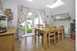 two Velux sky light windows, replacement uPVC double glazed French doors to garden