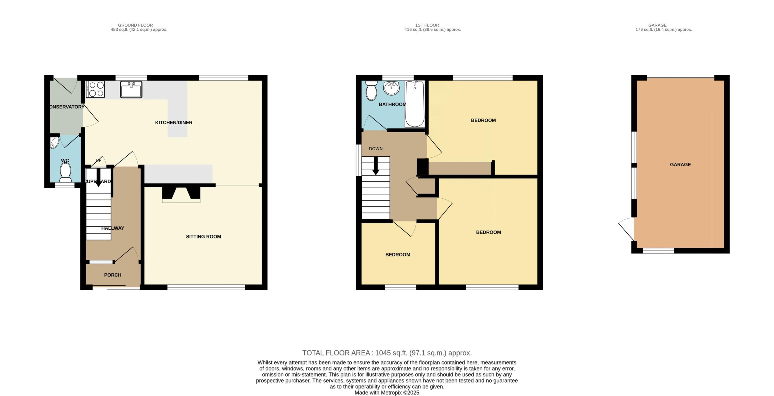 Single garage 18′ 2” x 9′ 9” (5.53m x 2.97m). Enclosed south facing rear garden.