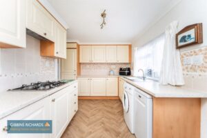 Rear aspect window, door to outside. Space and plumbing for washing machine and dishwasher. Integrated fridge/freezer, electric oven and gas hob.