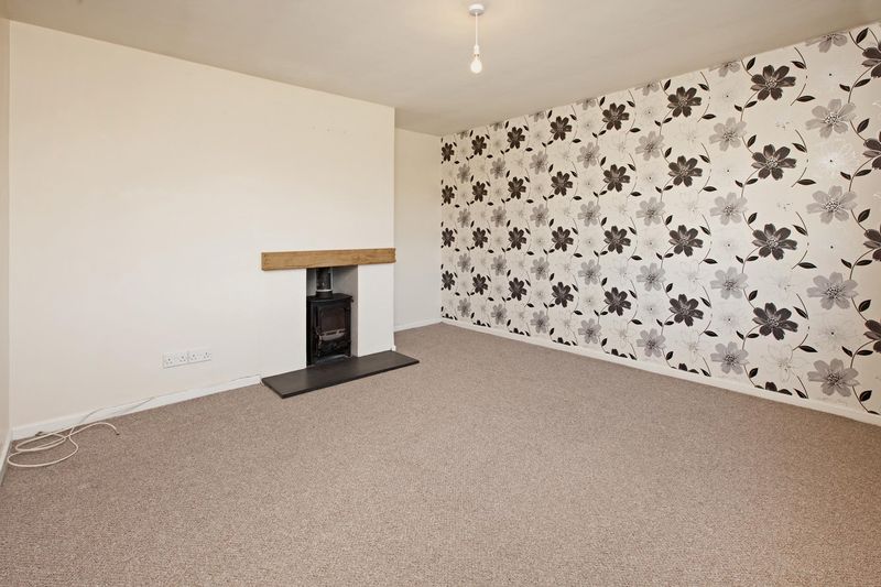 with recessed fireplace containing the wood burning stove, radiator, double glazed window to front aspect.