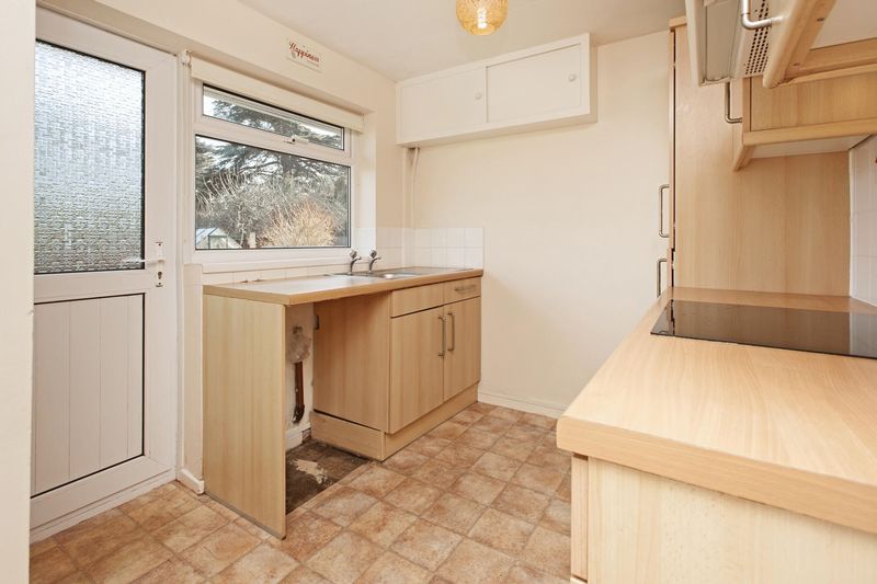 with built-in electric oven with ceramic hob and extractor hood, fitted floor and wall cupboard units, built-in fridge freezer unit, pantry cupboard, plumbing for washing machine, double glazed window to rear aspect and double glazed door to rear garden. Within the dining area is a radiator and double glazed window.